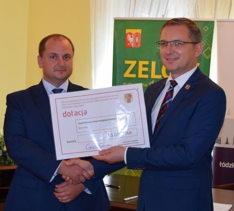 Województwo łódzkie dla gminy Zelów przyznało dotację w wysokości 75 000,00 zł na remont ścian (nawa, kruchta południowa) późnobarokowego kościoła pw. Św. Wawrzyńca i Tomasza w Łobudzicach oraz dotację w wysokości 15 000,00 złotych z przeznaczeniem na dofinansowanie zadań w zakresie zakupu sprzętu służącego ochronie życia, zdrowia, mienia lub środowiska przed pożarem, klęską żywiołową lub innym miejscowym zagrożeniem dla jednostki OSP w Pożdżenicach. Umowy w powyższym zakresie podpisali Burmistrz Zelowa Tomasz Jachymek oraz Proboszcz ks. Mirosław Simka.