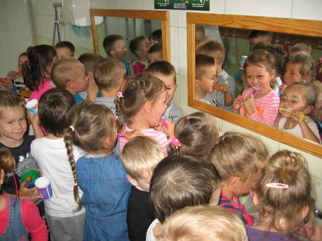 Przed godziną 12.00 zadbano o to, aby wszystkie przedszkolaki miały przygotowane szczoteczki z pastą do zębów i kubeczkiem na wodę. Dzieci niecierpliwością czekały na sygnał do rozpoczęcia. Po wspólnym odliczaniu, w samo południe, 61 dzieci z naszej placówki rozpoczęło mycie zębów. Zadanie było bardzo proste – każde z nich przez 2 minuty szczotkowało swoje zęby i robiło to bez przerwy. I udało się! Nasze przedszkolaki wspólnie z rówieśnikami z całego kraju ustanowiły nowy ogólnoświatowy rekord, który liczbą zdecydowanie przewyższył dotychczasowe osiągniecie. W ciągu 2 minut w naszym kraju szczotkowało zęby 313328 dzieci! Liczymy, iż ta liczba pozwoli na utrzymanie rekordu przez wiele lat. Na pamiątkę tego wydarzenia każdemu dziecku został wręczony certyfikat potwierdzający udział w ustanowieniu Rekordu Guinnesa. Także przedszkole otrzymało dyplom z podziękowaniem za udział w akcji. Cieszymy się z nowego rekordu i jesteśmy dumni z naszych przedszkolaków! Będzie to dla każdego dziecka wspaniałą pamiątką na całe życie.