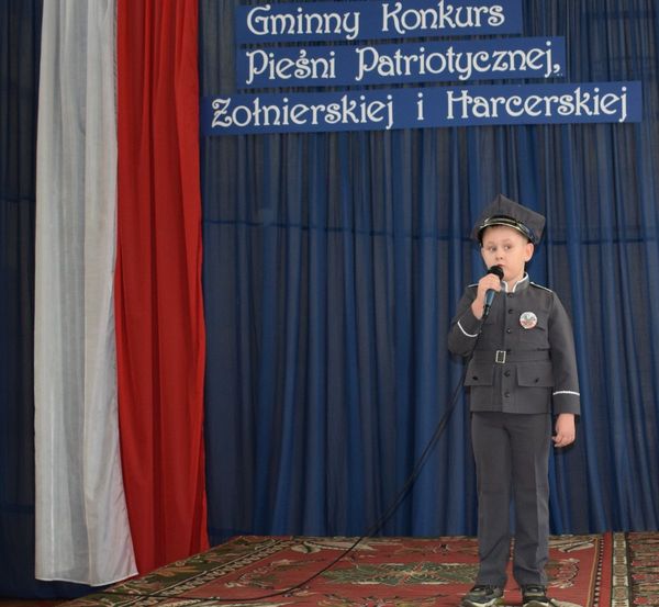 Zgromadzona publiczność z uwagą i skupieniem słuchała pięknych pieśni patriotycznych pochodzących z różnych okresów polskiej historii. Nie brakowało emocji i wzruszeń, a gromkie brawa nagradzały występ każdego uczestnika konkursu. W roli konferansjerów sprawdzili się uczniowie klasy V: Zofia Tarka i Krzysztof Jabłoński. Wszystkim młodym artystom gratulujemy udanych występów i życzymy dalszych sukcesów.